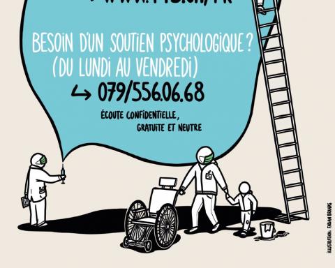 - Le numéro de soutien psychologique 079 556 06 68 est atteignable du lundi au vendredi de 9h à 12h et de 14h à 17h, et le mail soutienpsy.covid@chuv.