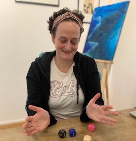 "J'ai d'abord pensé que ce n'était pas pour moi, parce que je ne suis pas en traitement palliatif. Mais finalement j'ai osé m'inscrire parce que cela fait plusieurs années que je veux faire mes directives anticipées et je pensais qu'à travers ce "jeu", ces lancés de dés pourraient m'y aider. C'est très intéressant et ouvre à la discussion sur des sujets qu’on n’aurait pas pensé aborder. Beaucoup de bienveillance, de partage et compréhension sur les sujets qu'on est prêt ou non à aborder. J'ai pu faire mes directives anticipées beaucoup plus facilement que si je l'avais fait seule chez moi. Je recommande à tout le monde de venir ! "